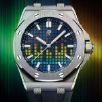 Suzanne Wong, Editor-in-Chief, WorldTempus is showing how gorgeous the Swiss movement replica Audemars Piguet Royal Oak Selfwinding “50th Anniversary” looks on her wrist. This 37mm stainless steel timepiece comes with a blue Grand Tapisserie dial and is equipped with the new selfwinding Calibre 5900 and the “50-years” oscillating weight in rhodium-toned pink gold.